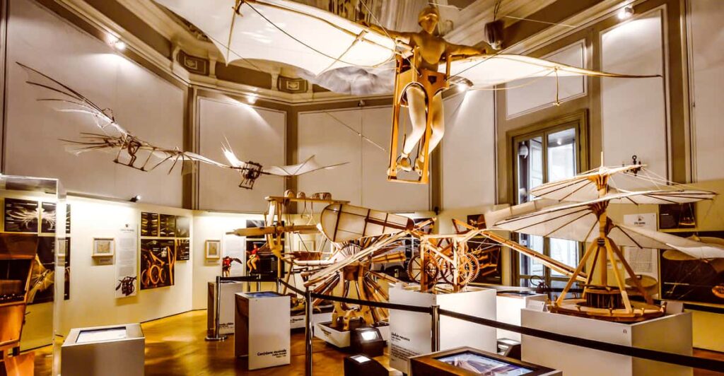 Le Nuove Gallerie Leonardo da Vinci : vous ne pouvez pas visiter le temple du génie de De Vinci, sans en apprendre plus sur son histoire ? Cap sur les Galeries Nouvelles ! Inventions historiques, œuvres d’art, manuscrits anciens… Vous vous sentirez tout petit devant le génie de Léonard de Vinci 🧞. Par ailleurs, saviez-vous que cette exposition permanente est la plus grande collection au monde consacrée aux inventions de l’ingénieur ?